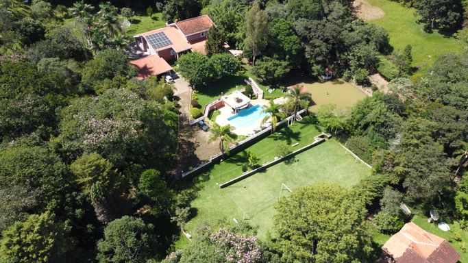 Área do terreno: 30.000,00 m² Área construída: 500,00 m² - 4 quartos e 2 banheiros , suíte uma master com hidro, closet e acesso à área externa; - Sala de estar com lareira e sala de jantar - Cozinha - Adega - Lavabo - Mezanino com sala aconchegante e lareira - Ateliê com vista para a natureza - Área de serviço - Tanque exclusivo com água quente para lavar seu pet - Espaço gourmet com churrasqueira, forno a lenha - Sala de jogos com mesa de tênis - Piscina rodeada de verde - Campo de futebol e quadra de tênis - Pomar com árvores frutíferas e fauna local - Balanços, pula-pula e campinho para as crianças - Pontos estratégicos com redes para descanso - Ofurô com vista externa - Sauna - Espaço disponível para construção de academia - Possibilidade de heliponto na propriedade Casa de caseiro independente, com aproximadamente 150 m² Apenas 2 km da cidade e 500 m do asfalto. Documentação ok