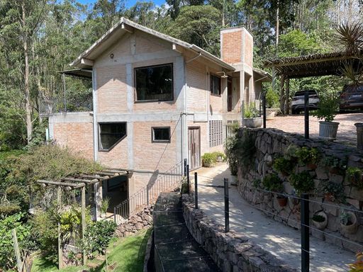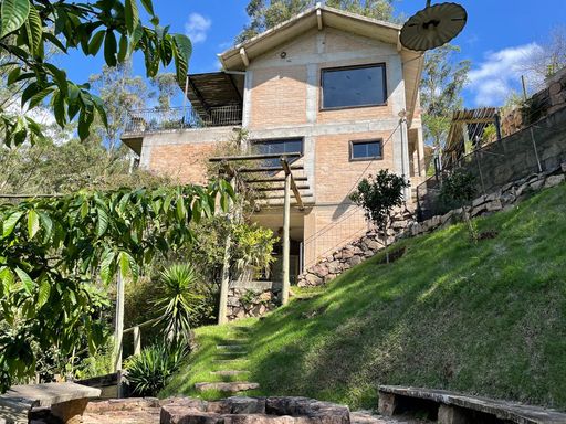 Casa no condomínio Parque da Mantiqueira, esta propriedade trás conforto com seu belo projeto de uma construção rústica, tijolos aparentes e contendo decks com vista livre