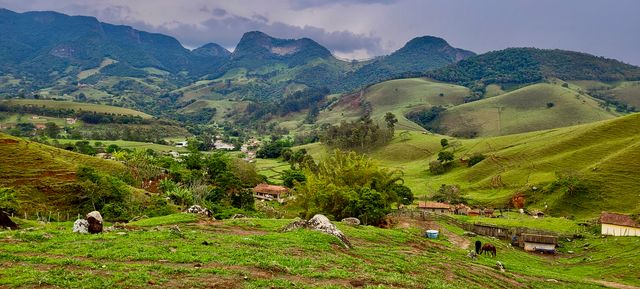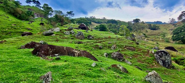 Terra fértil com água em abundância e muitas pedras que embelezam o cenário.